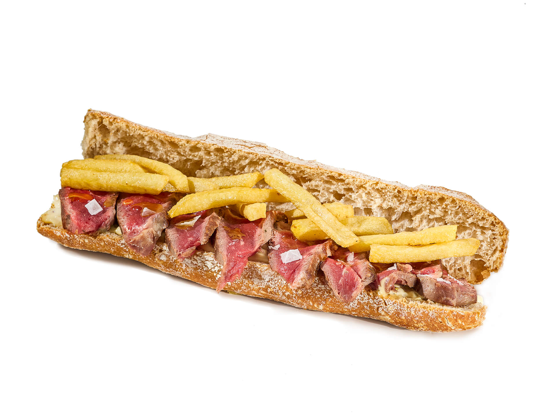 Entrecot de ternera a la plancha, salsa café de París, patatas fritas en pan de alta hidratación propio. Intenso, untuoso y con ese punto que lo convierte en el favorito de quien lo prueba una vez.